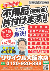 兵庫県尼崎市大庄北で引っ越しに伴う不用品お片付け回収作業を行いました。不用品回収お片付けリサイクル大阪本店